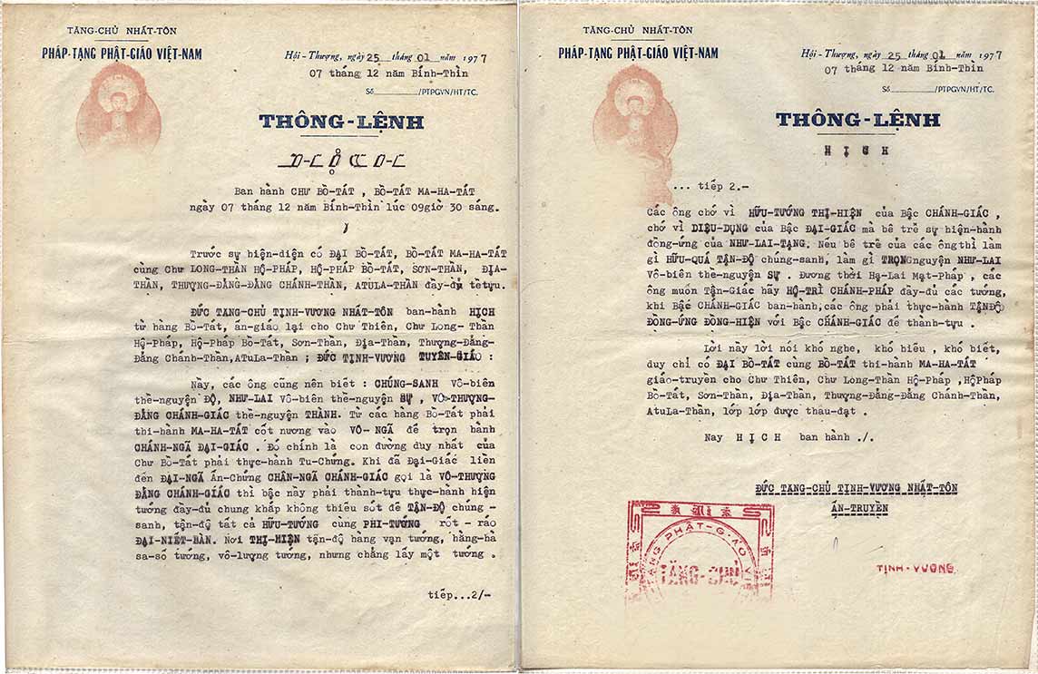The Supreme of Phap Tang Buddhism of Vietnam is increasingly grateful to the Buddhas’ Three Dharma Elements, respectfully requested to thoroughly attest all their abilities and merits so that they are able to attain the result of liberation through wisdom in this period of salvation.